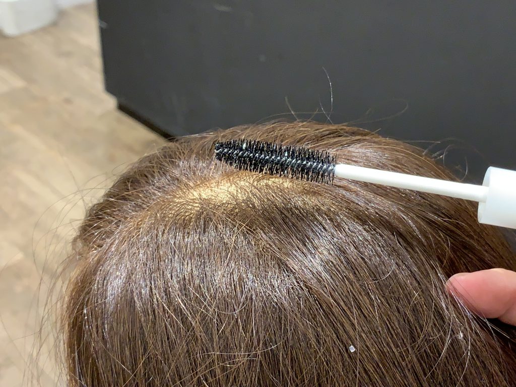 1.クシにややハードなスプレーを吹きつけ、それで梳かし馴染ませる
