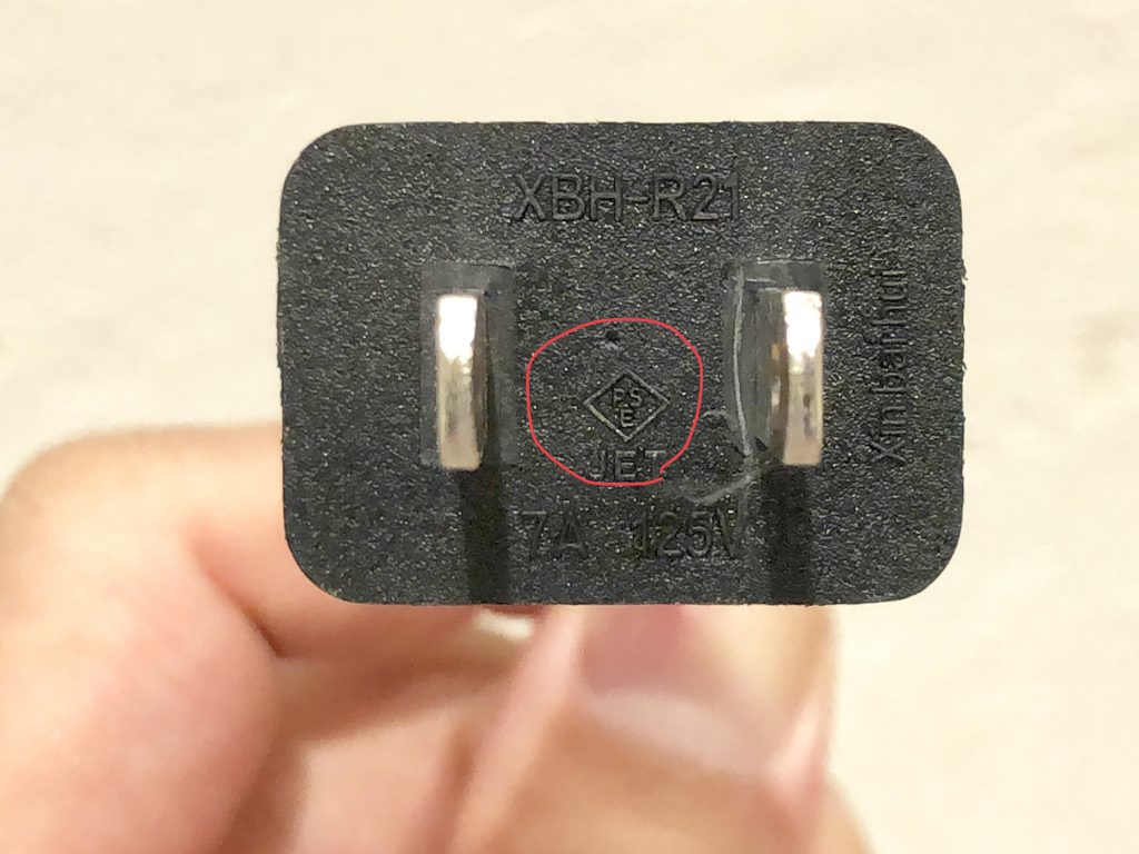 大切なのは「PSE」マーク、もしくは「<PS>E」と刻印されていること。