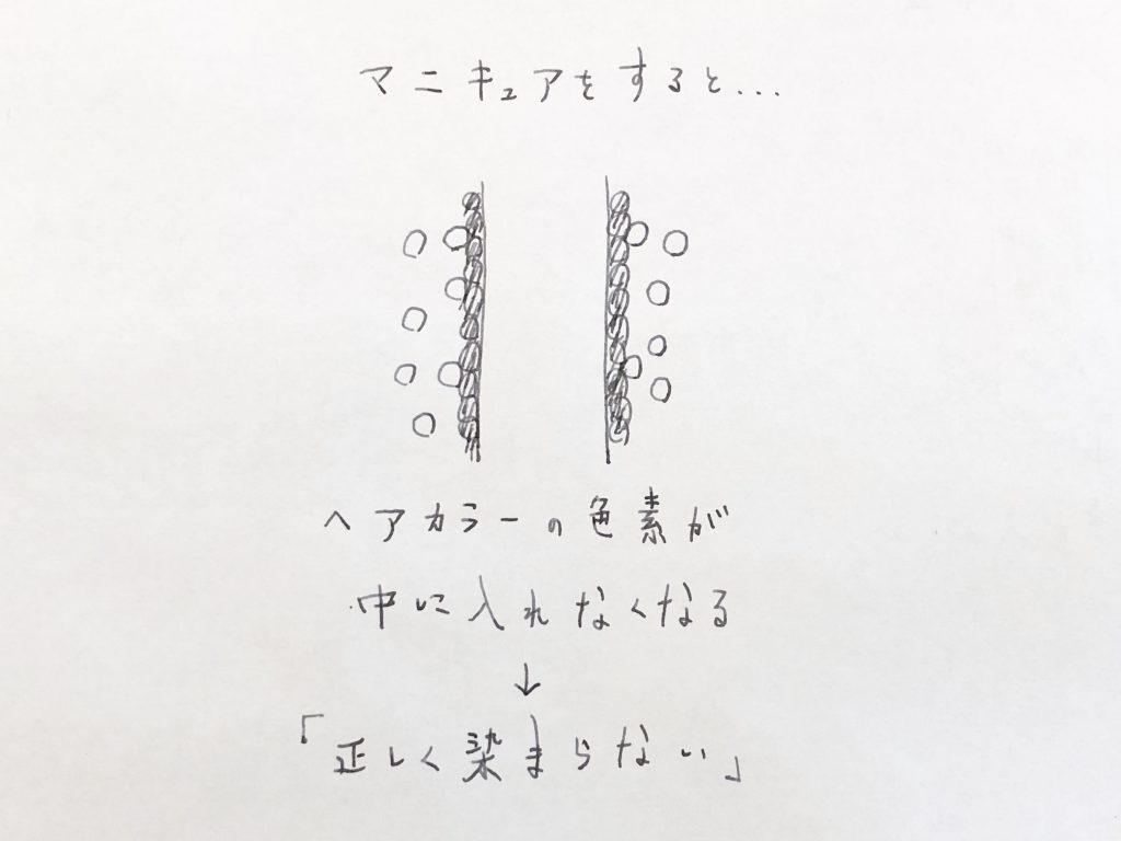 先にヘアマニキュアをして、髪の表面に色素が付いていると