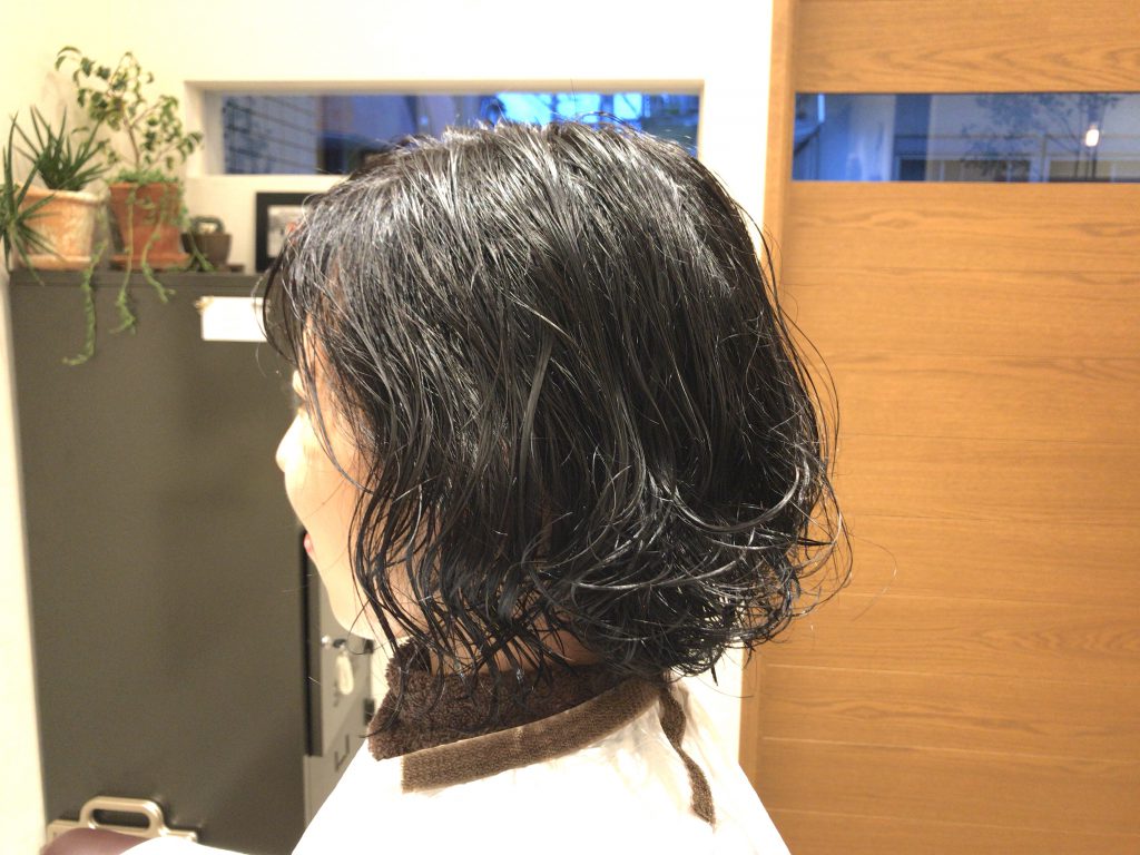 今回はパーマで「ふんわり」するので、髪がふわっと上がります