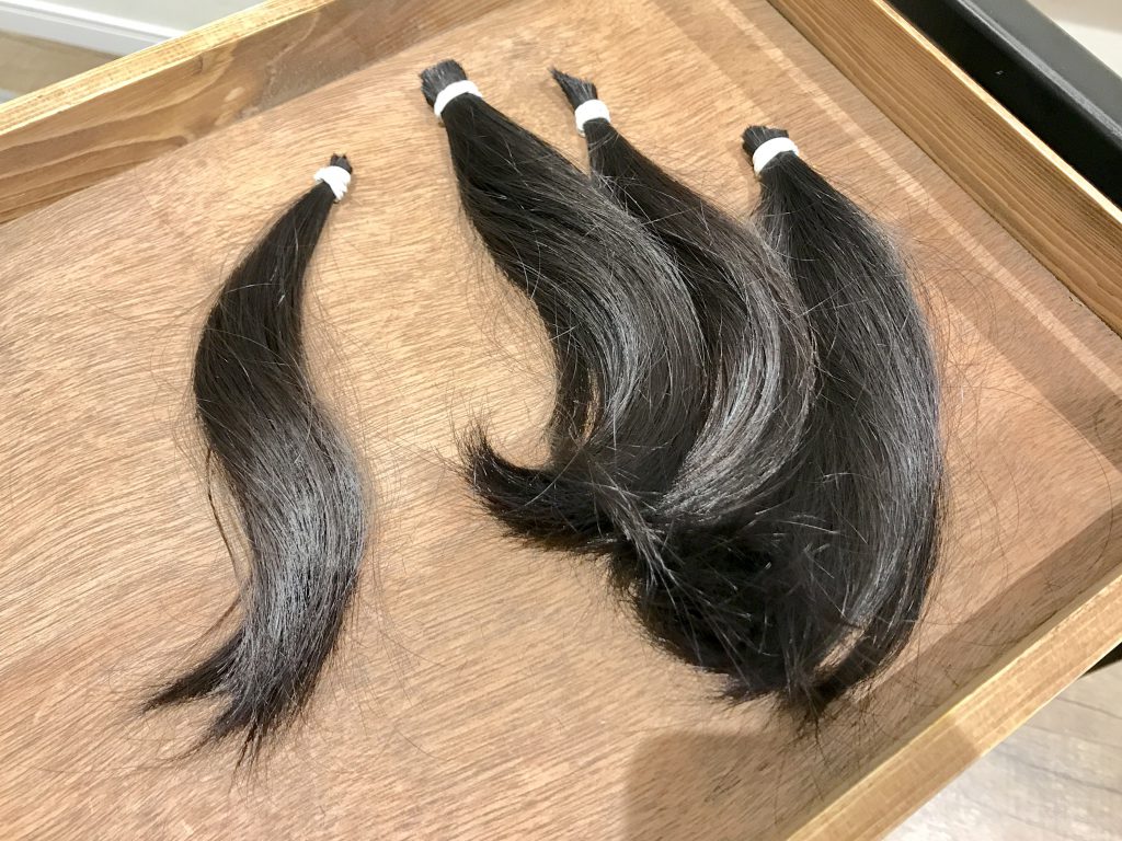 医療ウィッグに使用されるのは「31cm以上」なので、こちらの髪はウィッグ制作資金源となり、間接的な支援に繋がります