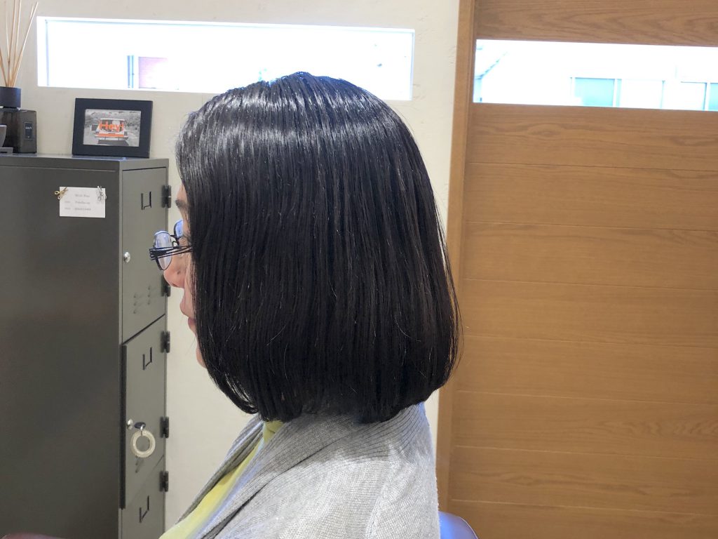 やはり切った後もクセの扱いが心配なので、その後の手入れの話しを相談し、結べる長さを残してボブにすることに。