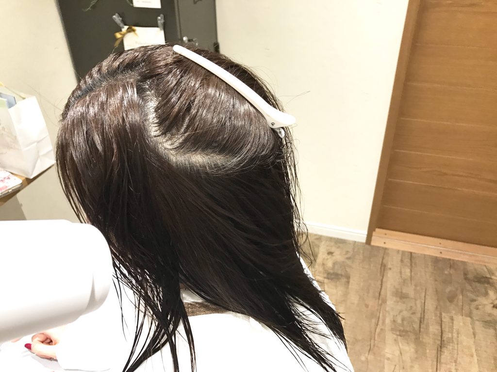 当然、頭皮が熱いので、絶えずドライヤーをフリフリしながら動かし続けます!