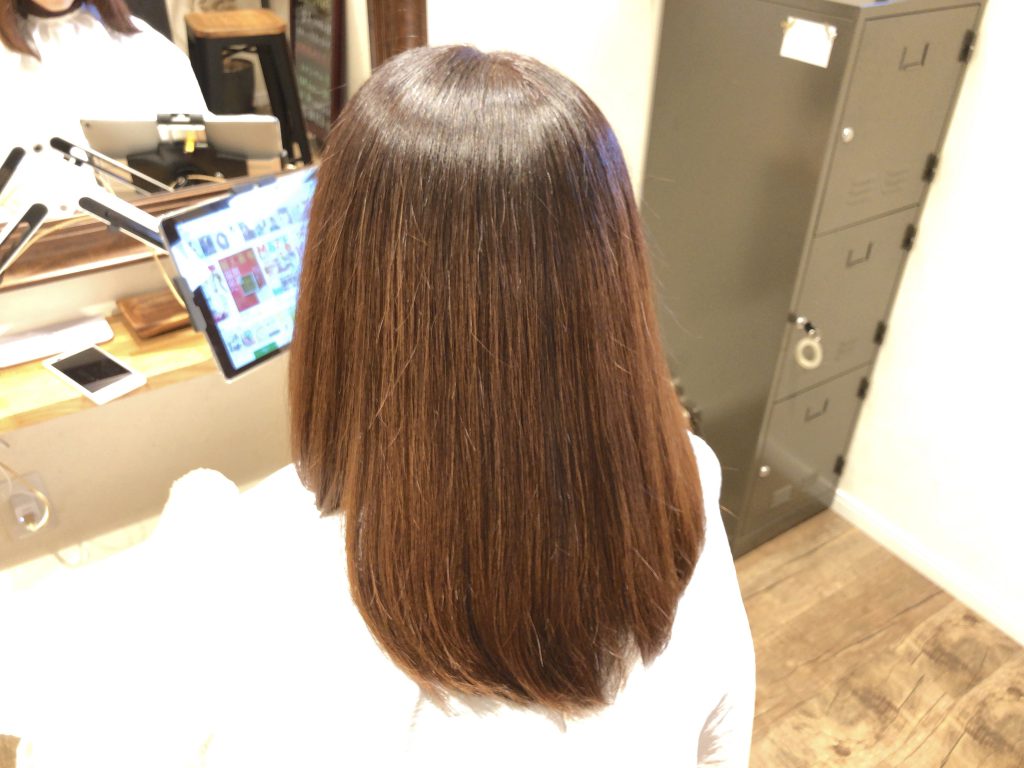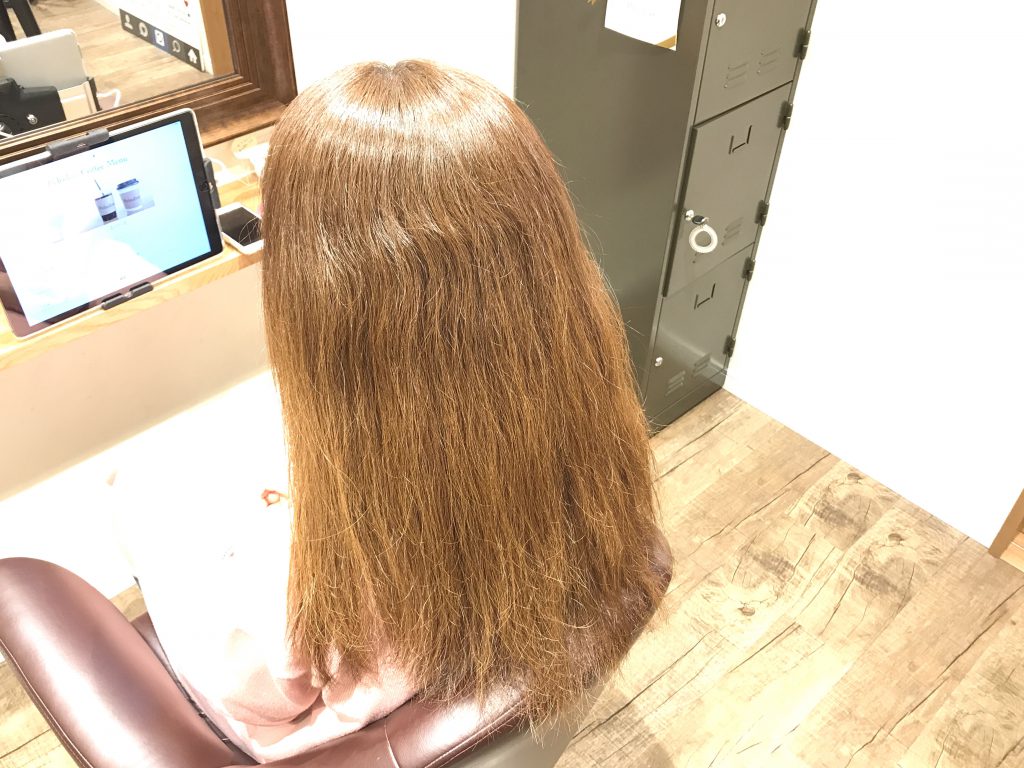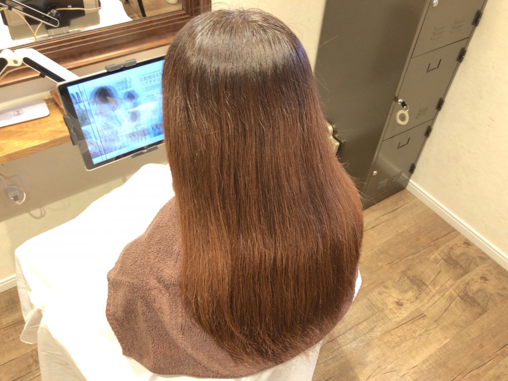 その後日、「テラヘルツミスト」と「オーガニックカラー」で、髪のタンパク質を復元しつつ、極力ダメージを抑えて施術!