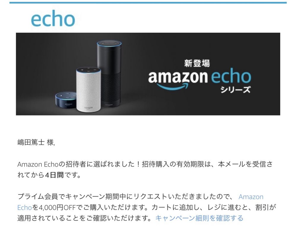 ※現在、Amazon Echoはリクエストからの招待制で、招待メールが来ないと買えないのであります