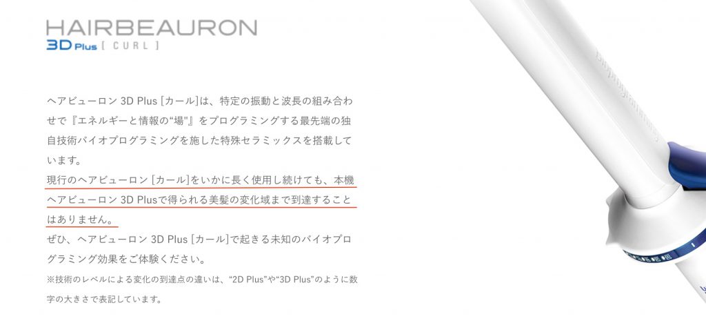 「現行のヘアビューロン(ピンク)をいかに長く使用し続けても、ヘアビューロン 3D Plus で得られる美髪の変化域まで到達することはありません」