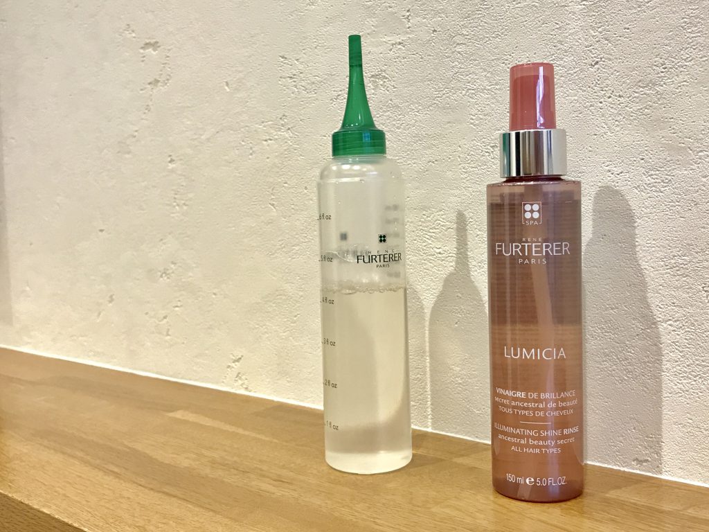 ヘアマスク後にはアセロラビネガーが主成分のシャインリンスを塗布します