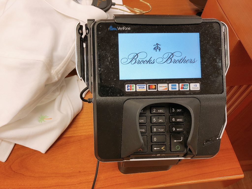 約80%の店がこちらの決済端末。客側に操作パネルがあり、自分でスワイプかインサートして、暗証番号かサインをします。