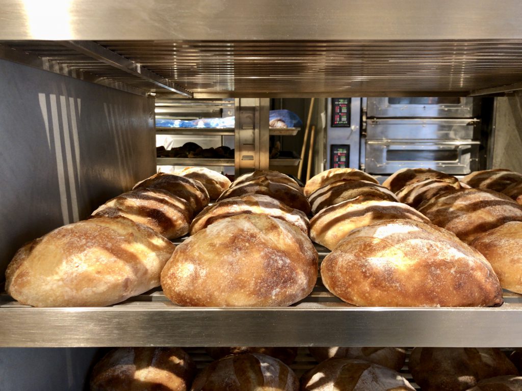 併設されたパン工房から随時、焼きたてのパンが並べられる。