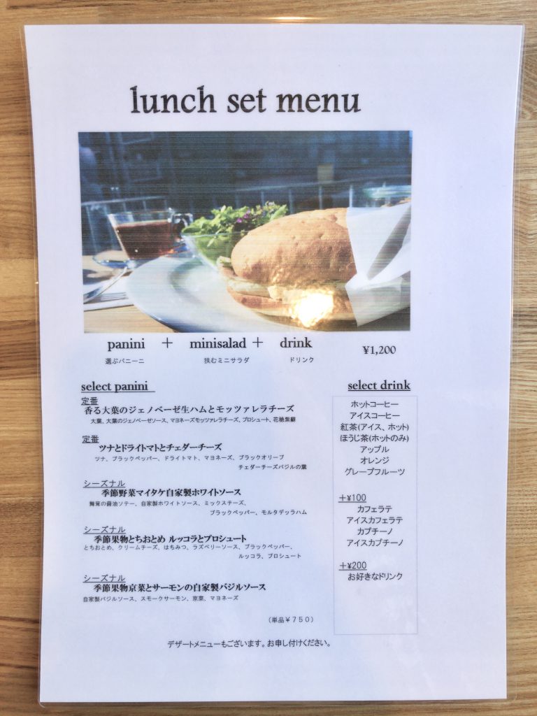 ランチは定番パニーニと季節のパニーニからチョイスし、サラダ、ドリンクのセットメニューがあります