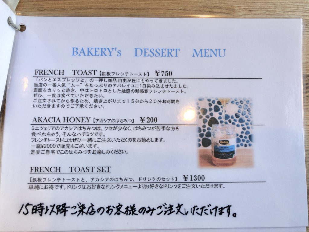 鉄板フレンチトーストは15:00〜