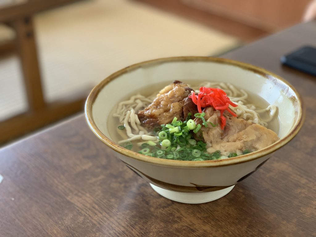 店内は電気も冷房も付かず、当然冷蔵庫もダメなので、あおさは提供できない(食中毒リスクのため)けど、ソーキそばなら、ということで作って頂きました