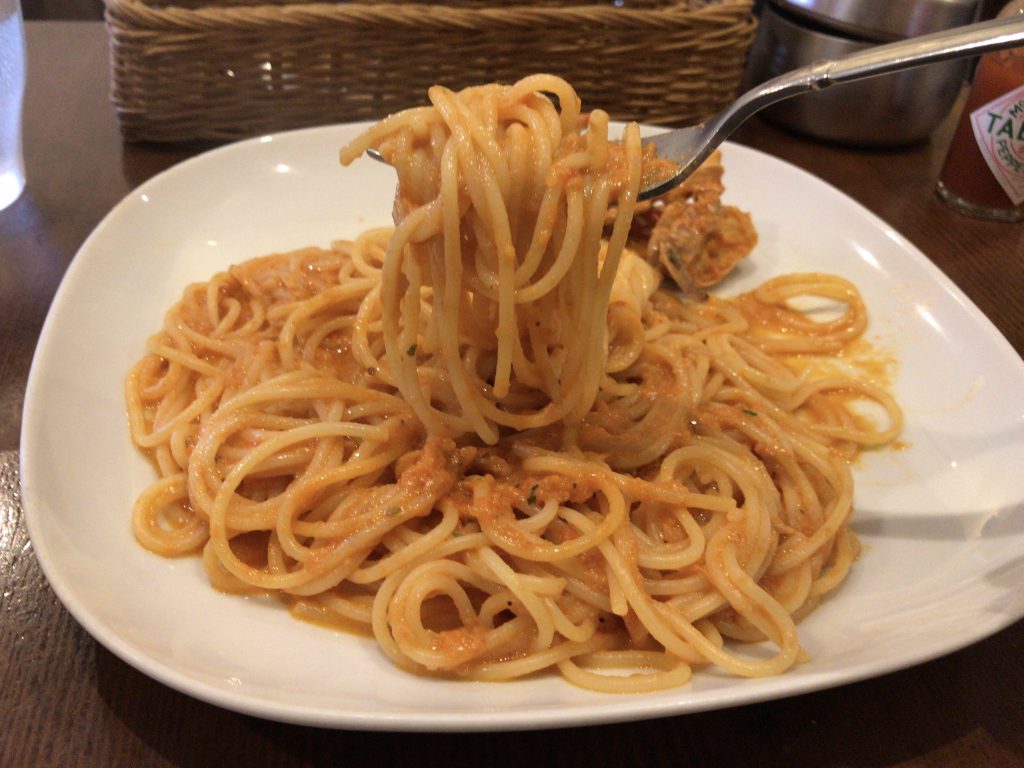 カニのトマトクリームパスタはフォークが止まらぬ美味しさ
