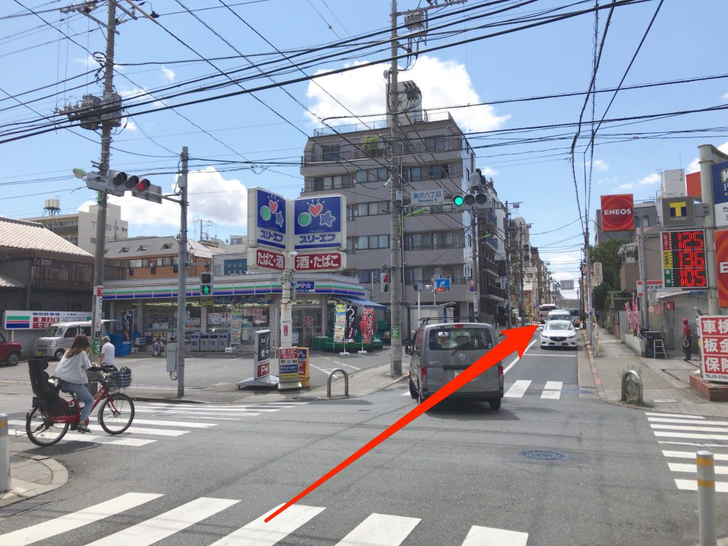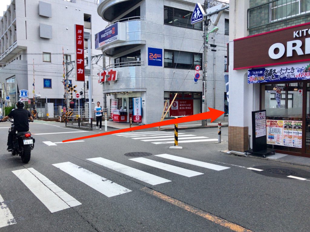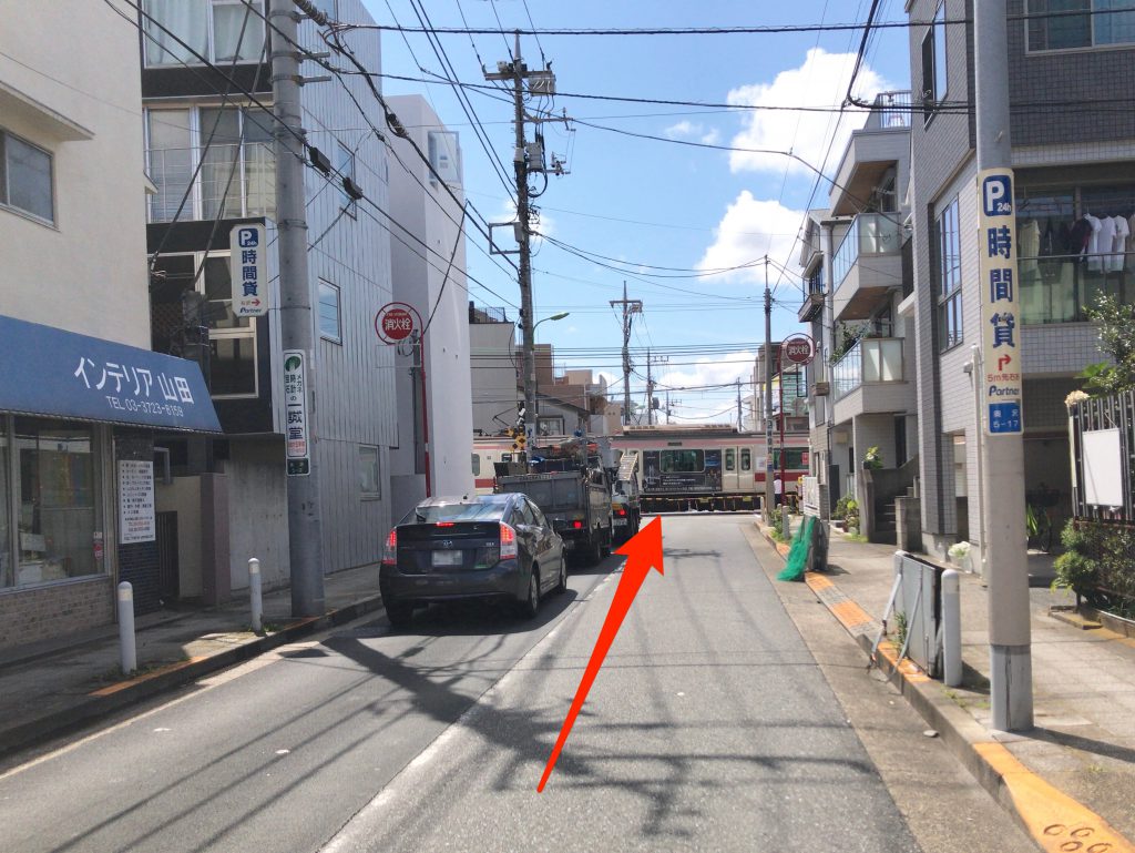 ひたすらまっすぐ行き、踏切を渡ります