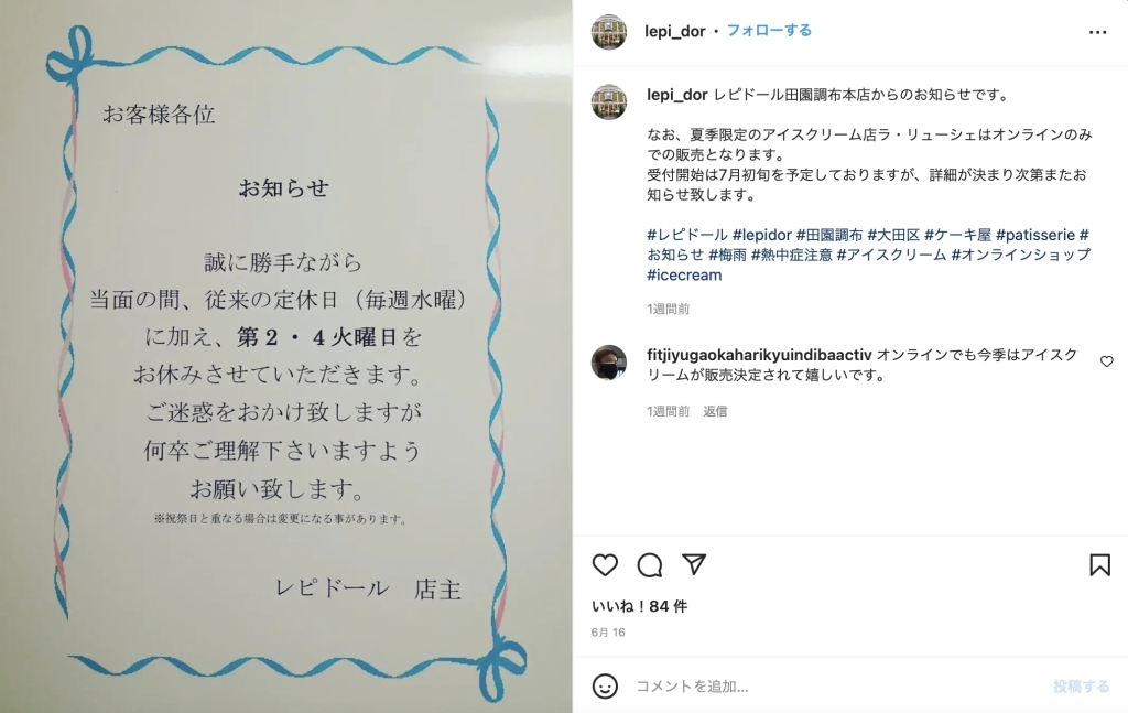 お店が開かないのは残念ではありますが、またあのジェラートが食べられるのは楽しみですね!