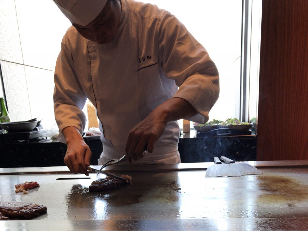 目の前でステーキが引っ切りなしにバンバン焼かれていきます