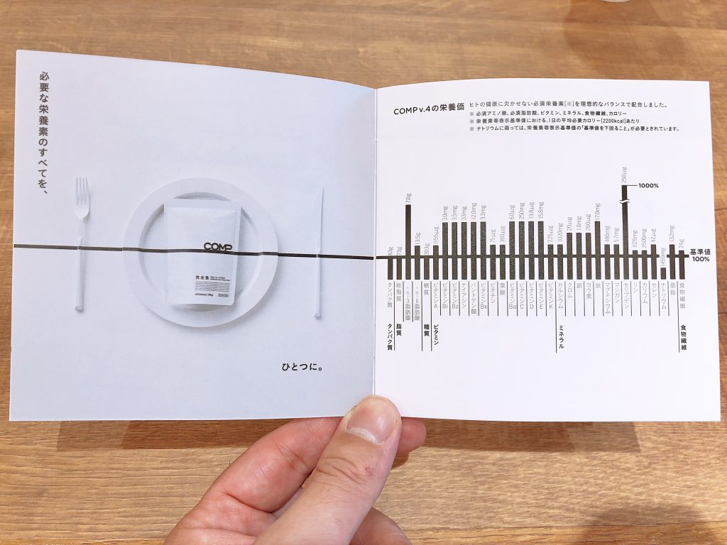 足りない栄養素を補う「Supplement」の対義語として、全てを満たすもの「Complement」をコンセプトに開発されたのが21世紀型の完全食「COMP」です。