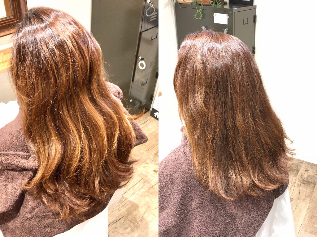 たしかに2ヶ月前のご来店時よりも髪色が落ち着いています!