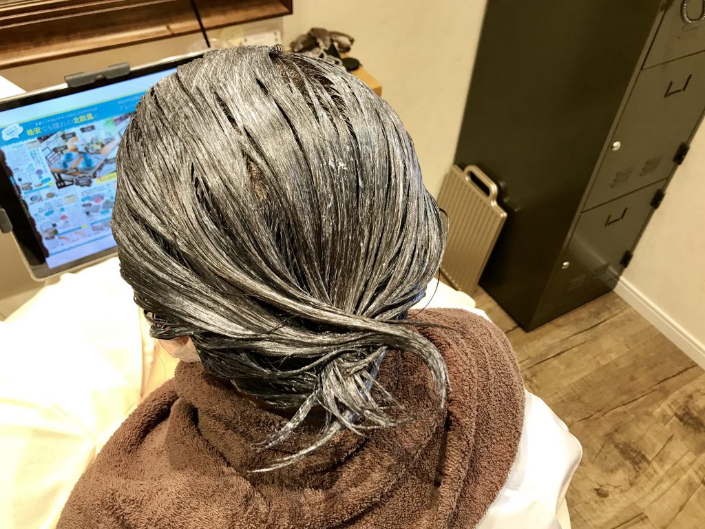 頭皮の調子が悪いとのことで、地肌には付けずに塗布完了!