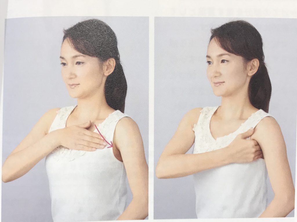 「人差し指と中指で鎖骨をはさみ、胸の中央に向かって滑らせ、そっともどす」を繰り返します