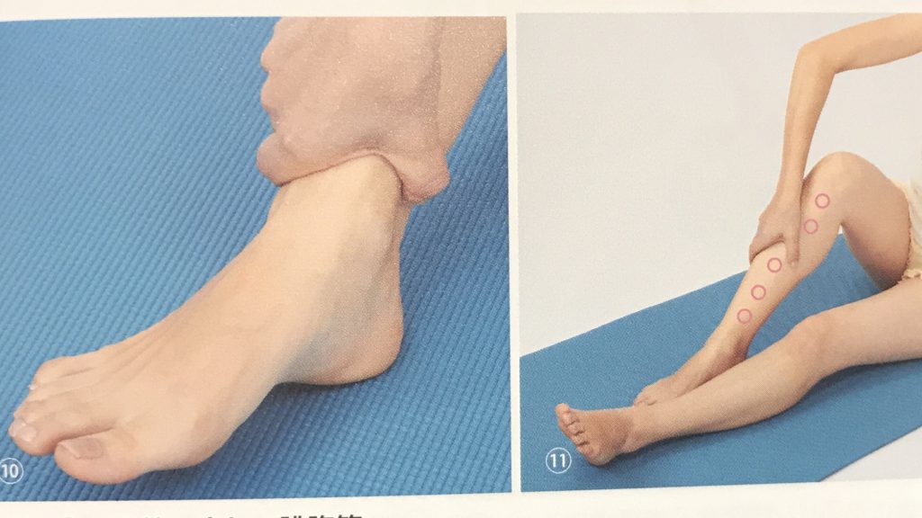 「まず、足首の前方の骨のキワを親指と人差し指でほぐします」